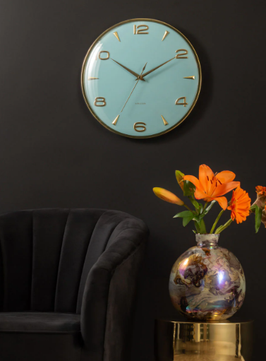 Sienna Glow væguret fra Karlsson er både charmerende og elegant. Med sin fine blå farve, buede glasfront og gyldne timeindeks tilføjer det stil og karakter til ethvert rum. Det markante design giver uret et moderne og let råt udtryk – perfekt til både stue, kontor eller soveværelse.